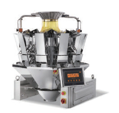 The 14 head weigher with a screw feeder is for oil / sticky / fresh food, such as minced meat, oiled fish, picless, and mustard.